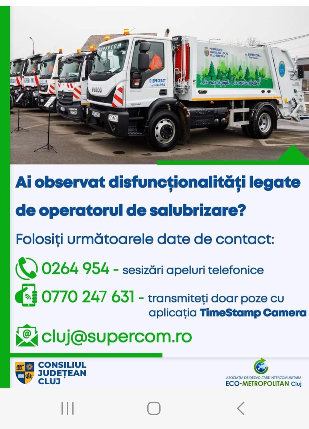Pentru informatii referitoare la colectarea selectiva a deseurilor, va rugam sa accesati informatiile puse la dispozitie de Primaria Cluj-Napoca, la https://primariaclujnapoca.ro/salubritate/colectarea-selectiva-a-deseurilor/